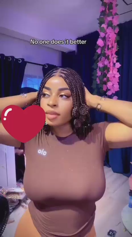 Embrace elegance and charm with this customized ready to wear Koroba Unit Braided lace Wig. Made from premium synthetic hair, this wig features an intricate braided design with flower-shaped braids that bring personality and flair to your style. Available in a deep burgundy shade, and can be customized to black. The wig is ideal for all occasions, from casual to special events, offering you a chic, eye-catching look without the hassle of styling. The length and structure are as seen, offering a bold yet stylish statement.”